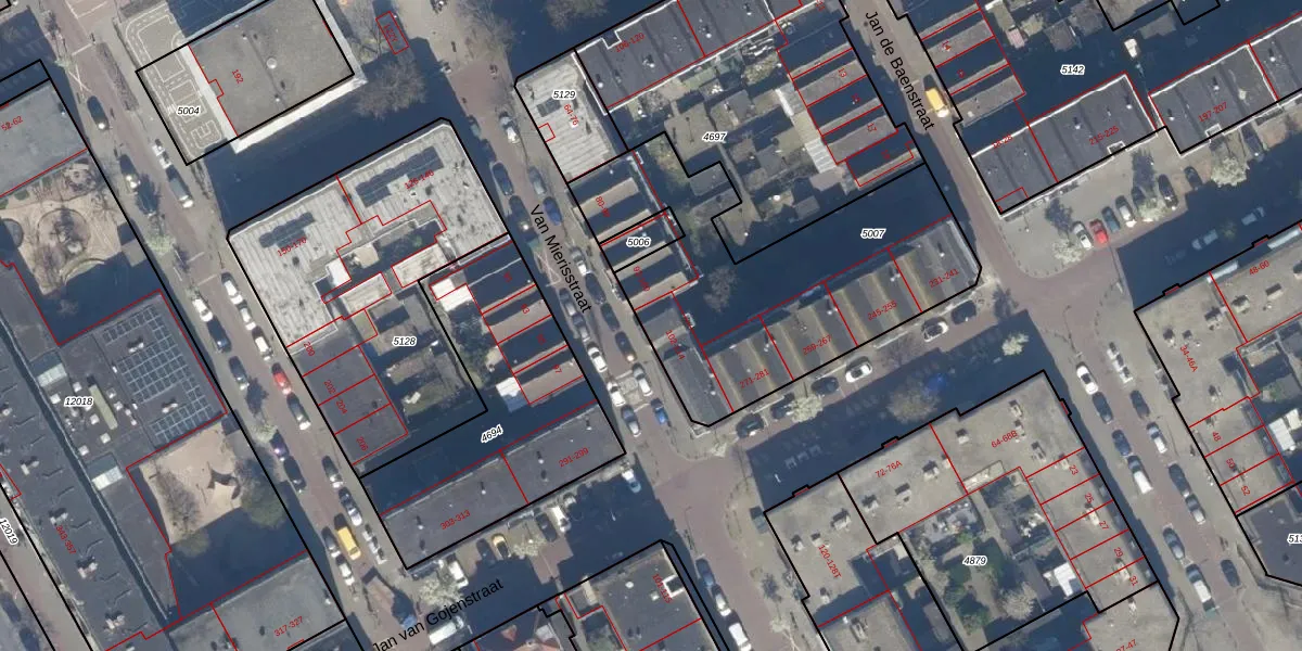 Van Mierisstraat 114 is gelegen op kadastraal perceel GVH22AE5007. Deze kadastrale aanduiding is uniek en wordt gebruikt door het Kadaster om eigendomsrechten en andere zakelijke rechten vast te leggen. Het perceel maakt onderdeel uit van de kadastrale gemeente 's-Gravenhage.