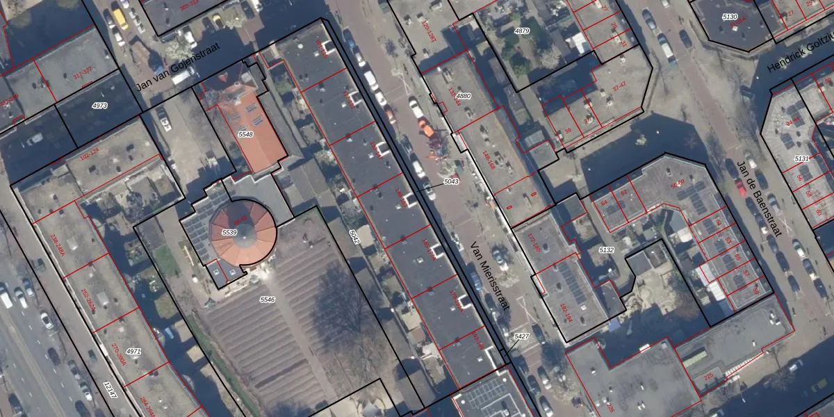 Het perceel waarop Van Mierisstraat 151 staat heeft een oppervlakte van 2141 m². Dit is een zeer groot perceel. De perceeloppervlakte wordt geregistreerd door het Kadaster. Gedetailleerde informatie over de maten van dit perceel kunt u vinden in het rapport Kadastrale kaart met maatvoering van Van Mierisstraat 151.
