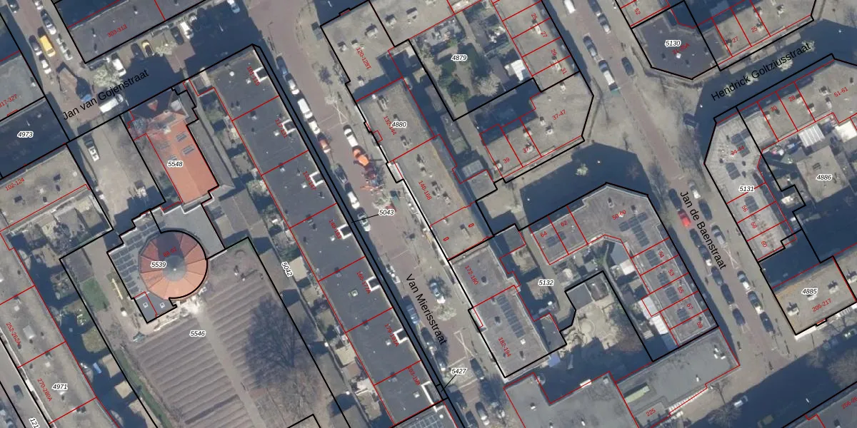 Van Mierisstraat 154 is gelegen op kadastraal perceel GVH22AE4880. Deze kadastrale aanduiding is uniek en wordt gebruikt door het Kadaster om eigendomsrechten en andere zakelijke rechten vast te leggen. Het perceel maakt onderdeel uit van de kadastrale gemeente 's-Gravenhage.