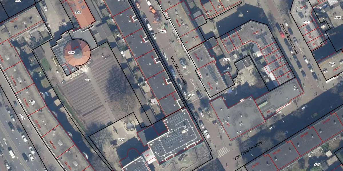 Van Mierisstraat 185 is gelegen op kadastraal perceel GVH22AE5042. Deze kadastrale aanduiding is uniek en wordt gebruikt door het Kadaster om eigendomsrechten en andere zakelijke rechten vast te leggen. Het perceel maakt onderdeel uit van de kadastrale gemeente 's-Gravenhage.