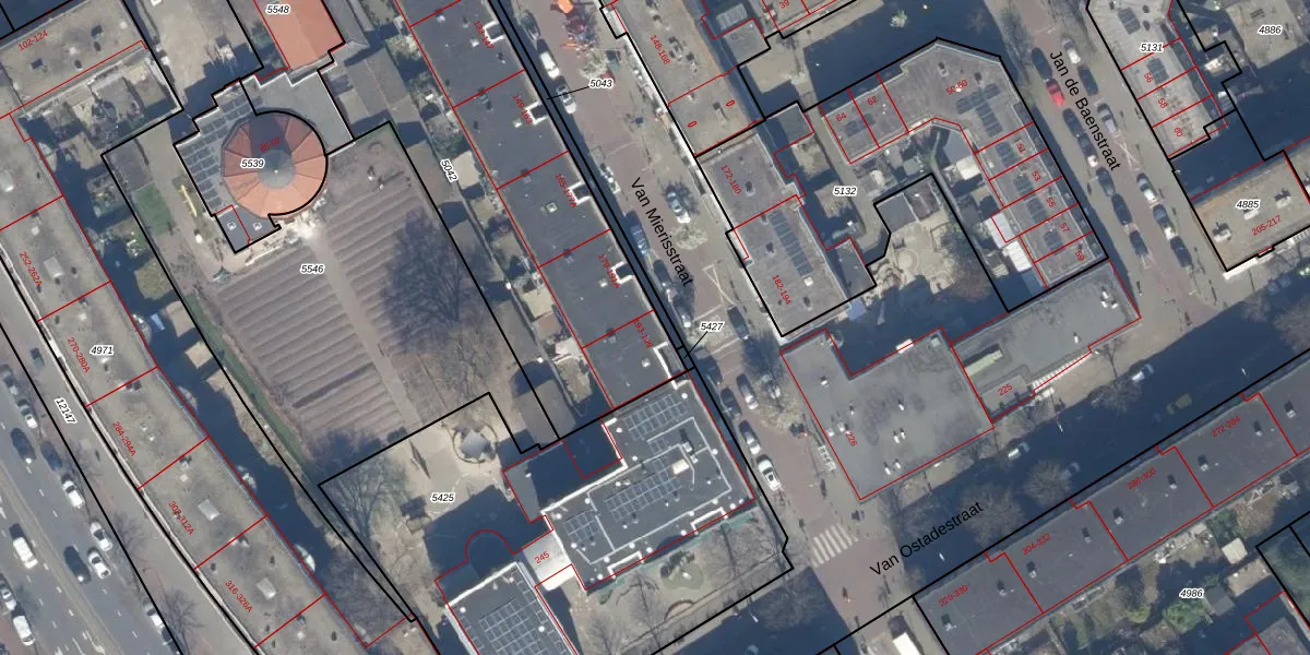 Het perceel waarop Van Mierisstraat 193 staat heeft een oppervlakte van 2141 m². Dit is een zeer groot perceel. De perceeloppervlakte wordt geregistreerd door het Kadaster. Gedetailleerde informatie over de maten van dit perceel kunt u vinden in het rapport Kadastrale kaart met maatvoering van Van Mierisstraat 193.