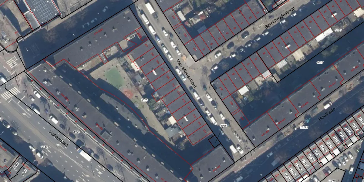 Van Mierisstraat 213 is gelegen op kadastraal perceel GVH22AE5015. Deze kadastrale aanduiding is uniek en wordt gebruikt door het Kadaster om eigendomsrechten en andere zakelijke rechten vast te leggen. Het perceel maakt onderdeel uit van de kadastrale gemeente 's-Gravenhage.
