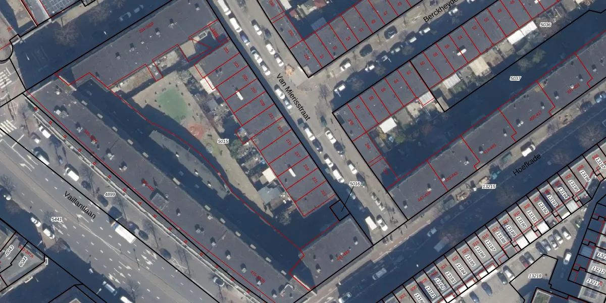 Van Mierisstraat 217 is gelegen op kadastraal perceel GVH22AE5015. Deze kadastrale aanduiding is uniek en wordt gebruikt door het Kadaster om eigendomsrechten en andere zakelijke rechten vast te leggen. Het perceel maakt onderdeel uit van de kadastrale gemeente 's-Gravenhage.