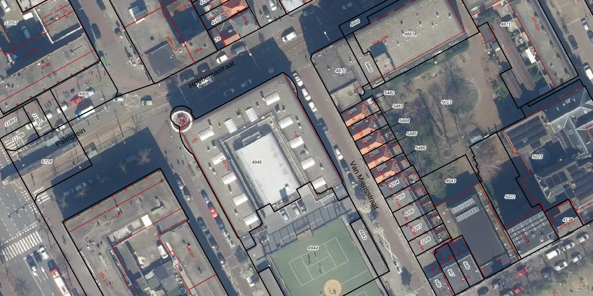 Het perceel waarop Van Mierisstraat 41 staat heeft een oppervlakte van 1696 m². Dit is een zeer groot perceel. De perceeloppervlakte wordt geregistreerd door het Kadaster. Gedetailleerde informatie over de maten van dit perceel kunt u vinden in het rapport Kadastrale kaart met maatvoering van Van Mierisstraat 41.
