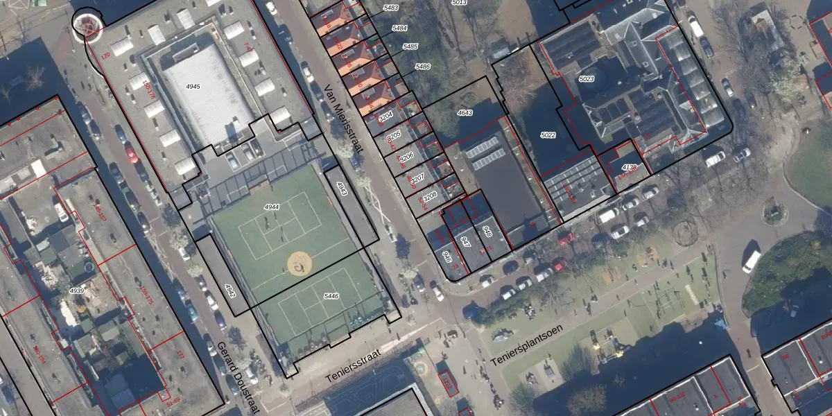 Het perceel waarop Van Mierisstraat 52 staat heeft een oppervlakte van 75 m². Dit is een klein perceel. De perceeloppervlakte wordt geregistreerd door het Kadaster. Gedetailleerde informatie over de maten van dit perceel kunt u vinden in het rapport Kadastrale kaart met maatvoering van Van Mierisstraat 52.