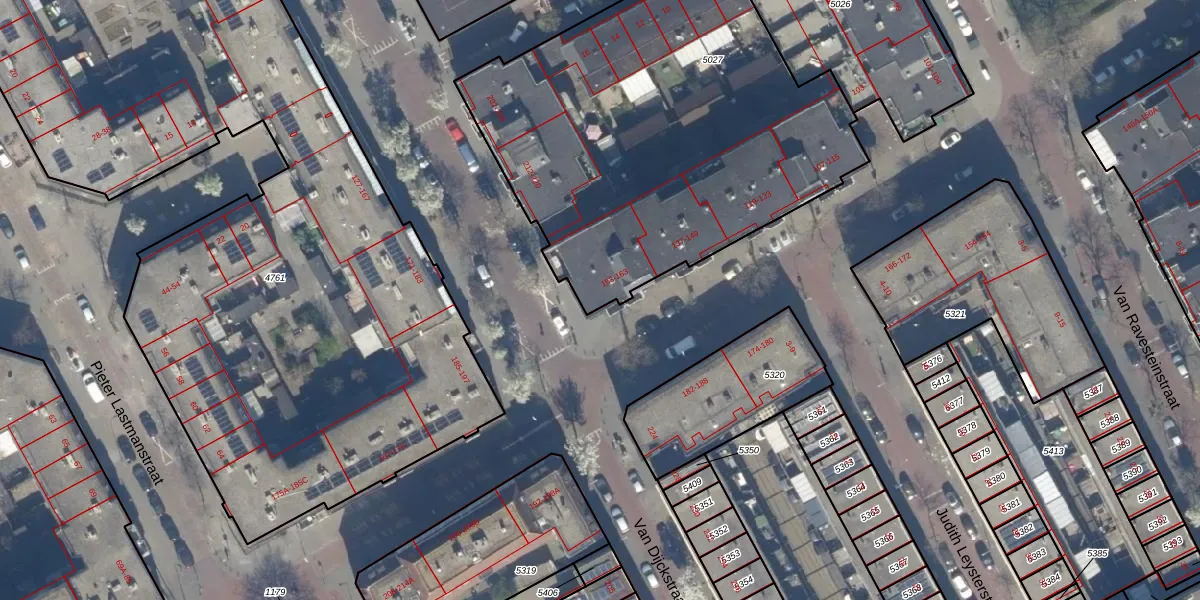 Het perceel waarop Van Ostadestraat 161 staat heeft een oppervlakte van 2291 m². Dit is een zeer groot perceel. De perceeloppervlakte wordt geregistreerd door het Kadaster. Gedetailleerde informatie over de maten van dit perceel kunt u vinden in het rapport Kadastrale kaart met maatvoering van Van Ostadestraat 161.
