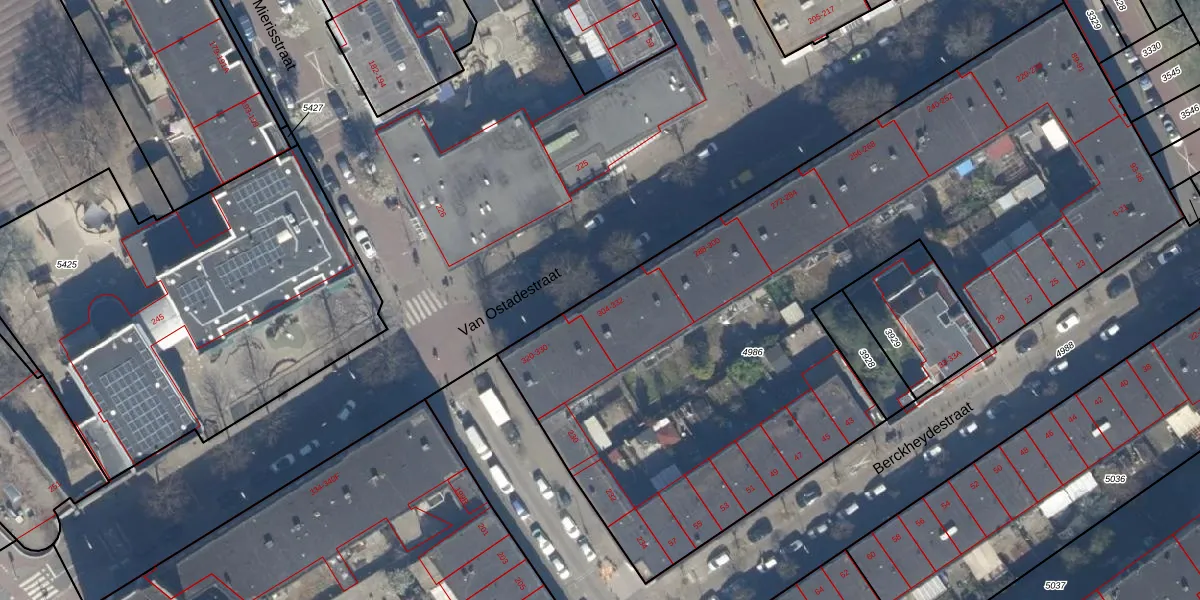 Van Ostadestraat 310 is gelegen op kadastraal perceel GVH22AE4986. Deze kadastrale aanduiding is uniek en wordt gebruikt door het Kadaster om eigendomsrechten en andere zakelijke rechten vast te leggen. Het perceel maakt onderdeel uit van de kadastrale gemeente 's-Gravenhage.