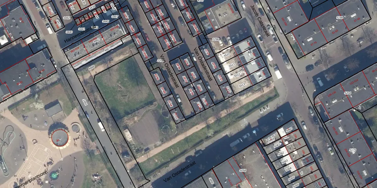 Van Ostadestraat 53 is gelegen op kadastraal perceel GVH22AE2278. Deze kadastrale aanduiding is uniek en wordt gebruikt door het Kadaster om eigendomsrechten en andere zakelijke rechten vast te leggen. Het perceel maakt onderdeel uit van de kadastrale gemeente 's-Gravenhage.
