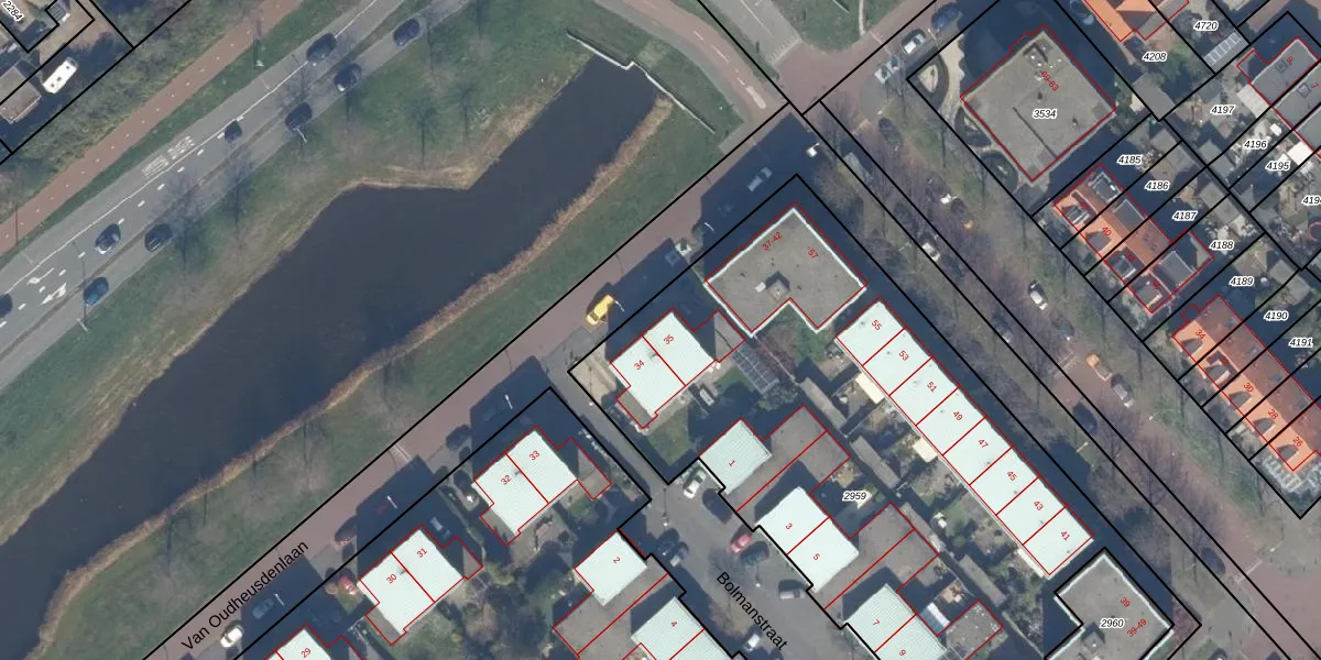 Het perceel waarop Van Oudheusdenlaan 35 staat heeft een oppervlakte van 3776 m². Dit is een zeer groot perceel. De perceeloppervlakte wordt geregistreerd door het Kadaster. Gedetailleerde informatie over de maten van dit perceel kunt u vinden in het rapport Kadastrale kaart met maatvoering van Van Oudheusdenlaan 35.
