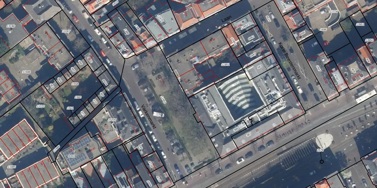 Het perceel waarop Varkenmarkt 2-E staat heeft een oppervlakte van 795 m². Dit is een groot perceel. De perceeloppervlakte wordt geregistreerd door het Kadaster. Gedetailleerde informatie over de maten van dit perceel kunt u vinden in het rapport Kadastrale kaart met maatvoering van Varkenmarkt 2-E.