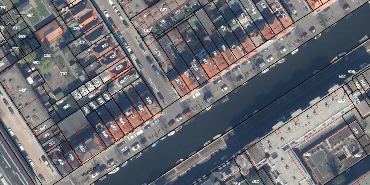 Veenkade 65 is gelegen op kadastraal perceel GVH10O7509. Deze kadastrale aanduiding is uniek en wordt gebruikt door het Kadaster om eigendomsrechten en andere zakelijke rechten vast te leggen. Het perceel maakt onderdeel uit van de kadastrale gemeente 's-Gravenhage.
