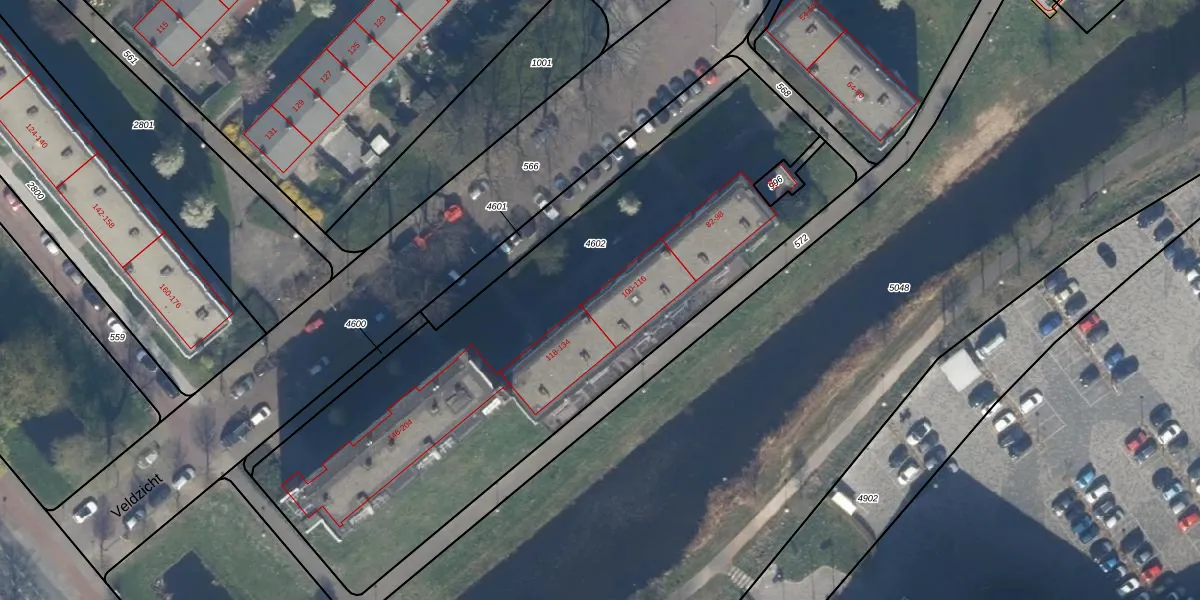 Veldzicht 114 is gelegen op kadastraal perceel GVH37AW4602. Deze kadastrale aanduiding is uniek en wordt gebruikt door het Kadaster om eigendomsrechten en andere zakelijke rechten vast te leggen. Het perceel maakt onderdeel uit van de kadastrale gemeente 's-Gravenhage.