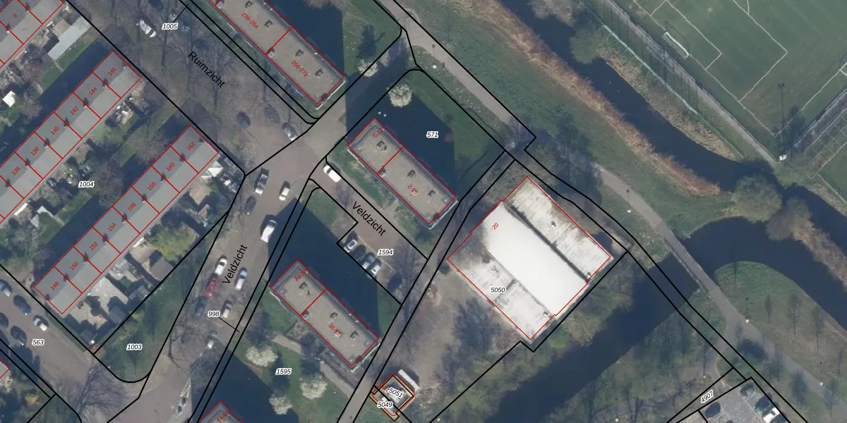 Het perceel waarop Veldzicht 14 staat heeft een oppervlakte van 969 m². Dit is een groot perceel. De perceeloppervlakte wordt geregistreerd door het Kadaster. Gedetailleerde informatie over de maten van dit perceel kunt u vinden in het rapport Kadastrale kaart met maatvoering van Veldzicht 14.