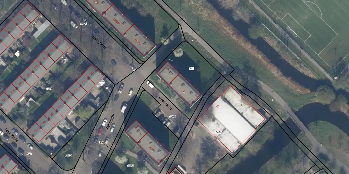 Het perceel waarop Veldzicht 2 staat heeft een oppervlakte van 969 m². Dit is een groot perceel. De perceeloppervlakte wordt geregistreerd door het Kadaster. Gedetailleerde informatie over de maten van dit perceel kunt u vinden in het rapport Kadastrale kaart met maatvoering van Veldzicht 2.
