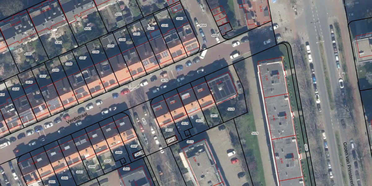 Verdistraat 24 is gelegen op kadastraal perceel LDN03H3413. Deze kadastrale aanduiding is uniek en wordt gebruikt door het Kadaster om eigendomsrechten en andere zakelijke rechten vast te leggen. Het perceel maakt onderdeel uit van de kadastrale gemeente Loosduinen.