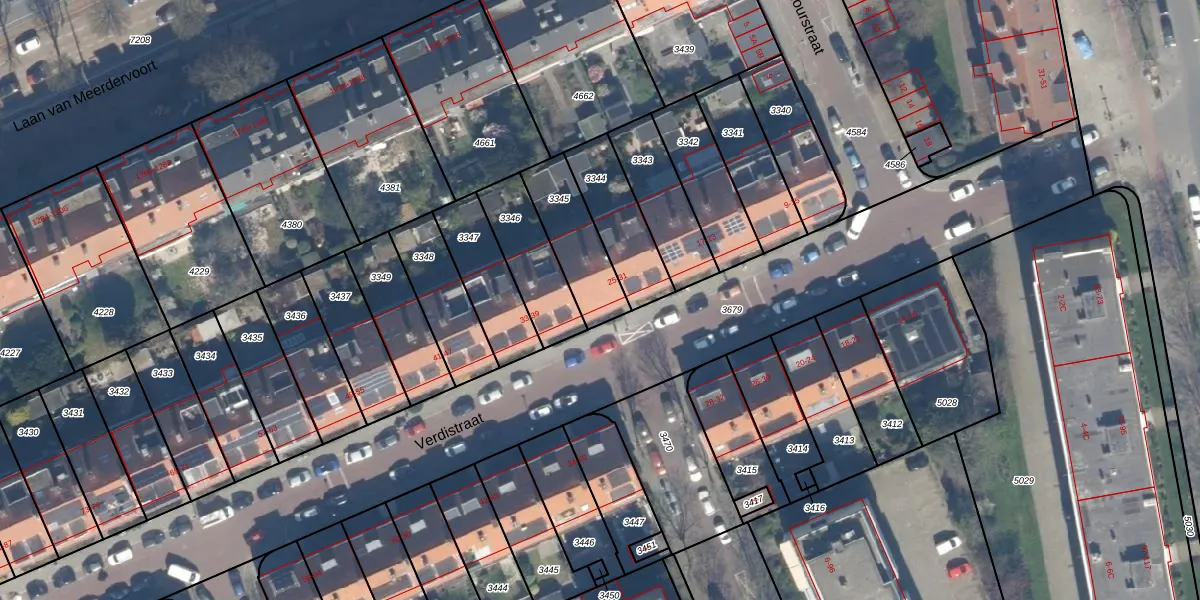 Verdistraat 25 is gelegen op kadastraal perceel LDN03H3345. Deze kadastrale aanduiding is uniek en wordt gebruikt door het Kadaster om eigendomsrechten en andere zakelijke rechten vast te leggen. Het perceel maakt onderdeel uit van de kadastrale gemeente Loosduinen.
