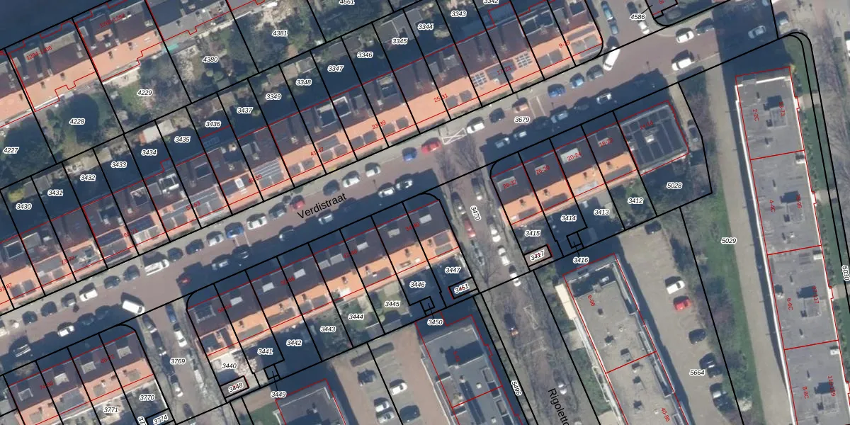 Het perceel waarop Verdistraat 34 staat heeft een oppervlakte van 201 m². Dit is een middelgroot perceel. De perceeloppervlakte wordt geregistreerd door het Kadaster. Gedetailleerde informatie over de maten van dit perceel kunt u vinden in het rapport Kadastrale kaart met maatvoering van Verdistraat 34.