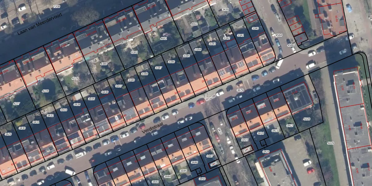 Het perceel waarop Verdistraat 39 staat heeft een oppervlakte van 230 m². Dit is een middelgroot perceel. De perceeloppervlakte wordt geregistreerd door het Kadaster. Gedetailleerde informatie over de maten van dit perceel kunt u vinden in het rapport Kadastrale kaart met maatvoering van Verdistraat 39.