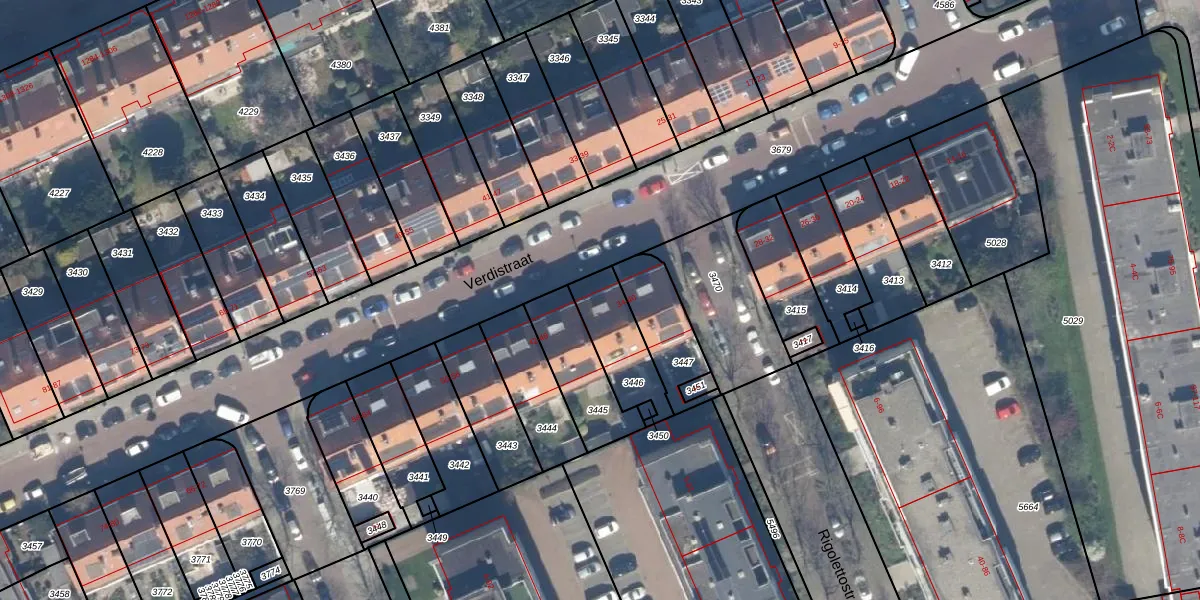 Het perceel waarop Verdistraat 40 staat heeft een oppervlakte van 199 m². Dit is een middelgroot perceel. De perceeloppervlakte wordt geregistreerd door het Kadaster. Gedetailleerde informatie over de maten van dit perceel kunt u vinden in het rapport Kadastrale kaart met maatvoering van Verdistraat 40.