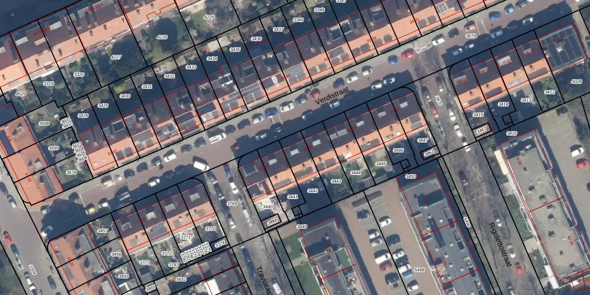 Het perceel waarop Verdistraat 56 staat heeft een oppervlakte van 228 m². Dit is een middelgroot perceel. De perceeloppervlakte wordt geregistreerd door het Kadaster. Gedetailleerde informatie over de maten van dit perceel kunt u vinden in het rapport Kadastrale kaart met maatvoering van Verdistraat 56.