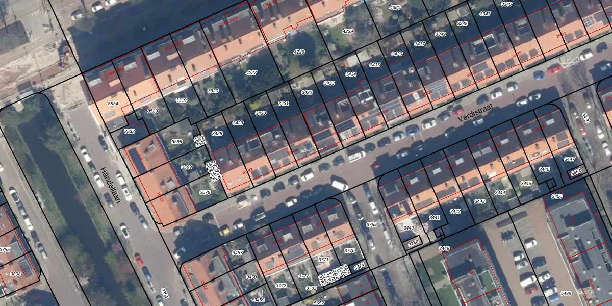Het perceel waarop Verdistraat 75 staat heeft een oppervlakte van 220 m². Dit is een middelgroot perceel. De perceeloppervlakte wordt geregistreerd door het Kadaster. Gedetailleerde informatie over de maten van dit perceel kunt u vinden in het rapport Kadastrale kaart met maatvoering van Verdistraat 75.