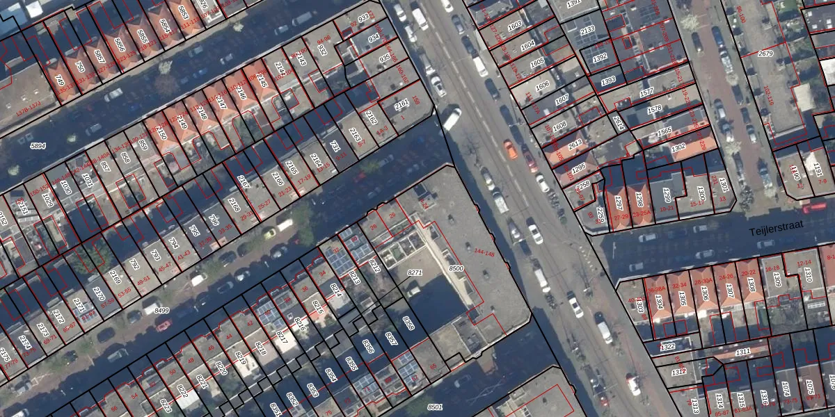 Het adres ligt op het perceel GVH29-AM-8500, dat zich in de kadastrale gemeente 's-Gravenhage bevindt. De oppervlakte van het perceel is 1069 m². Dat is groter dan gemiddeld in 's-Gravenhage, waar de gemiddelde perceeloppervlakte op 303,34 m² ligt. Het grootste perceel in de kadastrale gemeente is 3,0 ha. Het kleinste perceel heeft een oppervlakte van 0 m². Op het perceel liggen in totaal 22 adressen. De huidige grenzen van het perceel zijn digitaal in de Basisregistratie Kadaster (BRK) geregistreerd op 10-01-2007.