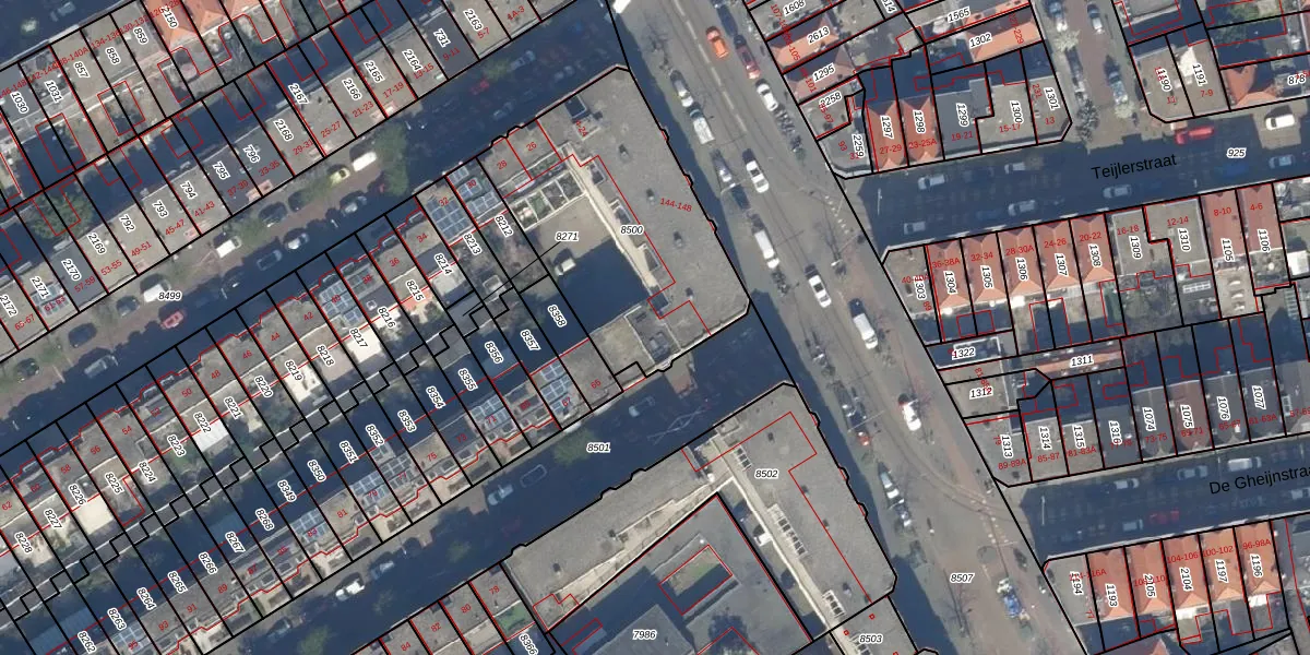 Het perceel waarop het adres ligt is GVH29-AM-8500. De afkorting 'GVH29' staat voor kadastrale gemeente 's-Gravenhage. Het perceel is met 1069 m² relatief groot. Het gemiddelde ligt in de kadastrale gemeente 's-Gravenhage op 303,34 m². Het grootste perceel in de kadastrale gemeente is 3,0 ha. Het kleinste perceel heeft een oppervlakte van 0 m². Op het perceel zijn 22 adressen aanwezig. De huidige grenzen van het perceel zijn digitaal in de Basisregistratie Kadaster (BRK) geregistreerd op 10-01-2007.