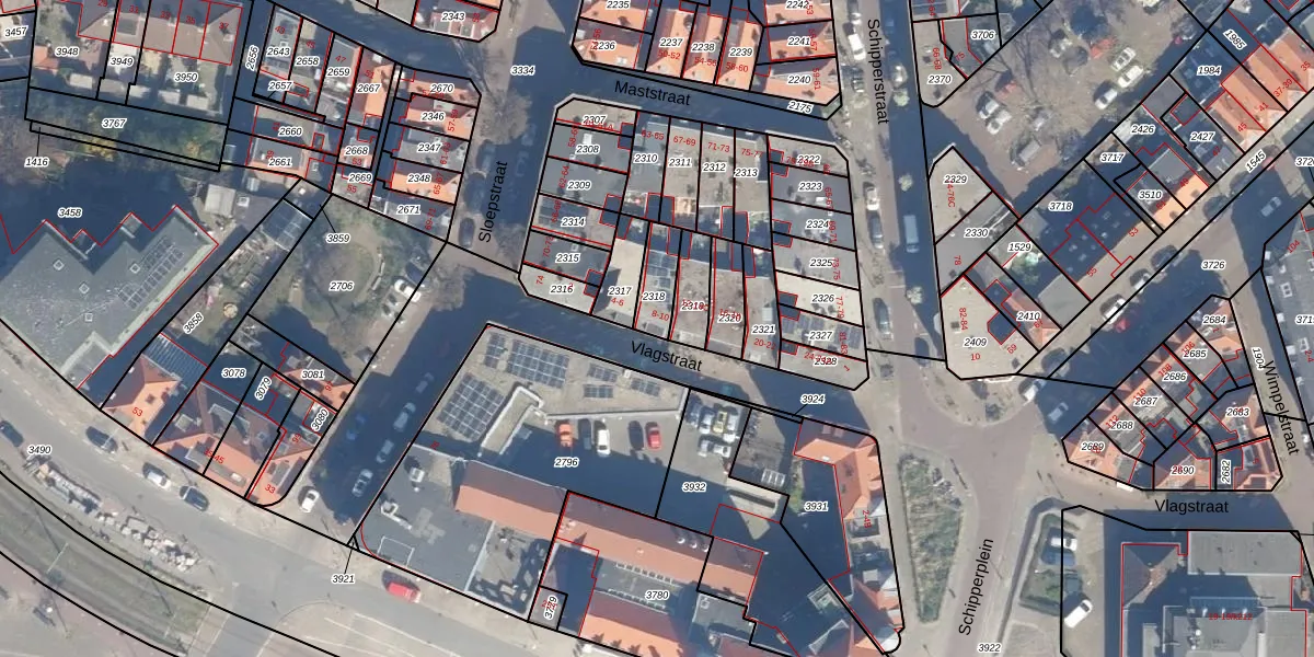 Het perceel waarop Vlagstraat 8 staat heeft een oppervlakte van 87 m². Dit is een klein perceel. De perceeloppervlakte wordt geregistreerd door het Kadaster. Gedetailleerde informatie over de maten van dit perceel kunt u vinden in het rapport Kadastrale kaart met maatvoering van Vlagstraat 8.