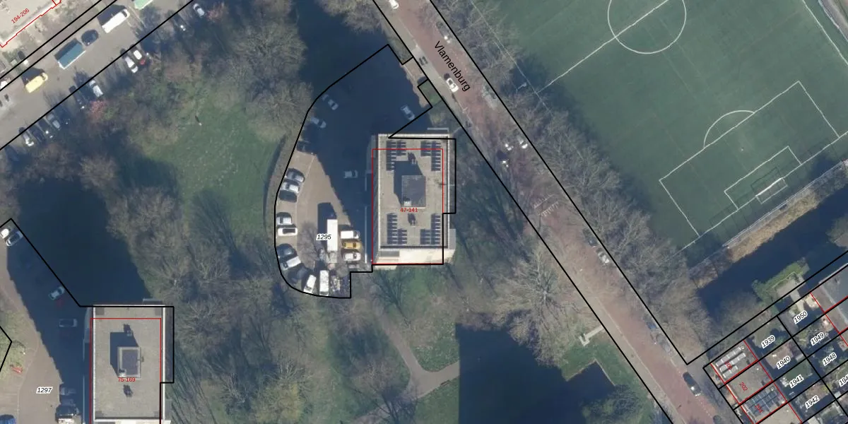 Het perceel waarop Vlamenburg 49 staat heeft een oppervlakte van 1740 m². Dit is een zeer groot perceel. De perceeloppervlakte wordt geregistreerd door het Kadaster. Gedetailleerde informatie over de maten van dit perceel kunt u vinden in het rapport Kadastrale kaart met maatvoering van Vlamenburg 49.