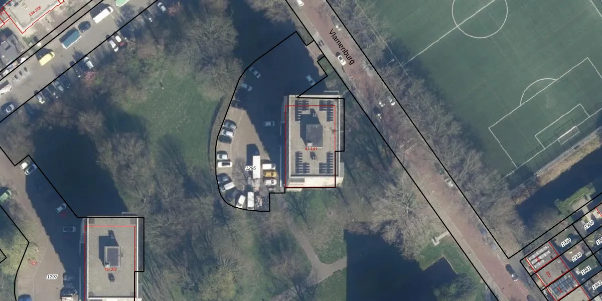 Het perceel waarop Vlamenburg 63 staat heeft een oppervlakte van 1740 m². Dit is een zeer groot perceel. De perceeloppervlakte wordt geregistreerd door het Kadaster. Gedetailleerde informatie over de maten van dit perceel kunt u vinden in het rapport Kadastrale kaart met maatvoering van Vlamenburg 63.