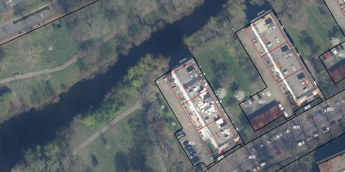 Het perceel waarop het adres ligt is GVH34-AS-1301. De afkorting 'GVH34' staat voor kadastrale gemeente 's-Gravenhage. De oppervlakte van het perceel is 1626 m². Dat is groter dan gemiddeld in 's-Gravenhage, waar de gemiddelde perceeloppervlakte op 1318,64 m² ligt. Het grootste perceel in de kadastrale gemeente is 11,0 ha. Het kleinste perceel heeft een oppervlakte van 0 m². Op het perceel liggen in totaal 53 adressen. De huidige grenzen van het perceel zijn digitaal in de Basisregistratie Kadaster (BRK) geregistreerd op 23-12-2003.