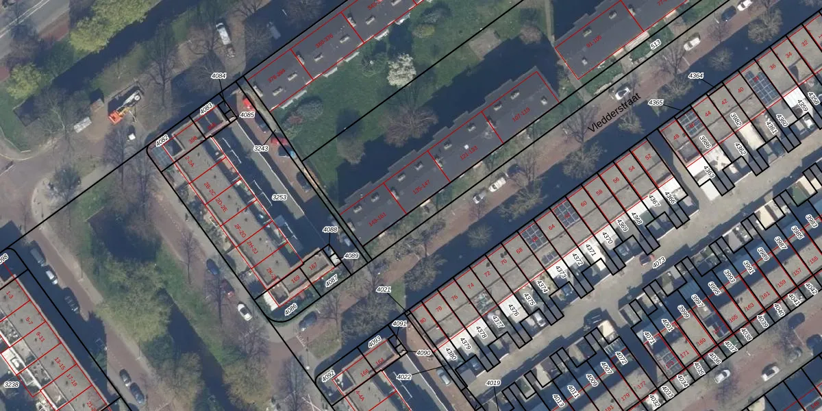 Vledderstraat 147 is gelegen op kadastraal perceel GVH37AW512. Deze kadastrale aanduiding is uniek en wordt gebruikt door het Kadaster om eigendomsrechten en andere zakelijke rechten vast te leggen. Het perceel maakt onderdeel uit van de kadastrale gemeente 's-Gravenhage.