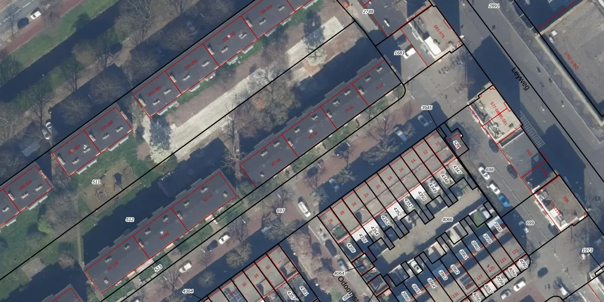 Vledderstraat 45 is gelegen op kadastraal perceel GVH37AW512. Deze kadastrale aanduiding is uniek en wordt gebruikt door het Kadaster om eigendomsrechten en andere zakelijke rechten vast te leggen. Het perceel maakt onderdeel uit van de kadastrale gemeente 's-Gravenhage.