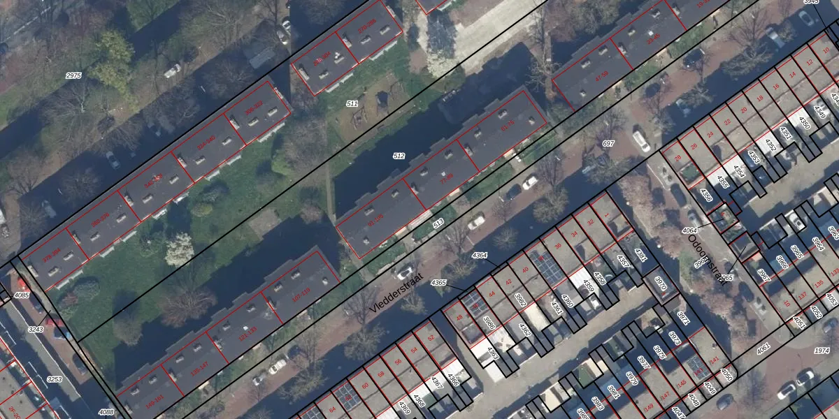 Vledderstraat 95 is gelegen op kadastraal perceel GVH37AW512. Deze kadastrale aanduiding is uniek en wordt gebruikt door het Kadaster om eigendomsrechten en andere zakelijke rechten vast te leggen. Het perceel maakt onderdeel uit van de kadastrale gemeente 's-Gravenhage.