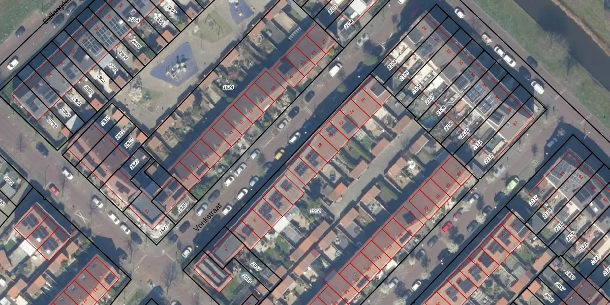 Het perceel waarop Vonkstraat 16 staat heeft een oppervlakte van 3913 m². Dit is een zeer groot perceel. De perceeloppervlakte wordt geregistreerd door het Kadaster. Gedetailleerde informatie over de maten van dit perceel kunt u vinden in het rapport Kadastrale kaart met maatvoering van Vonkstraat 16.