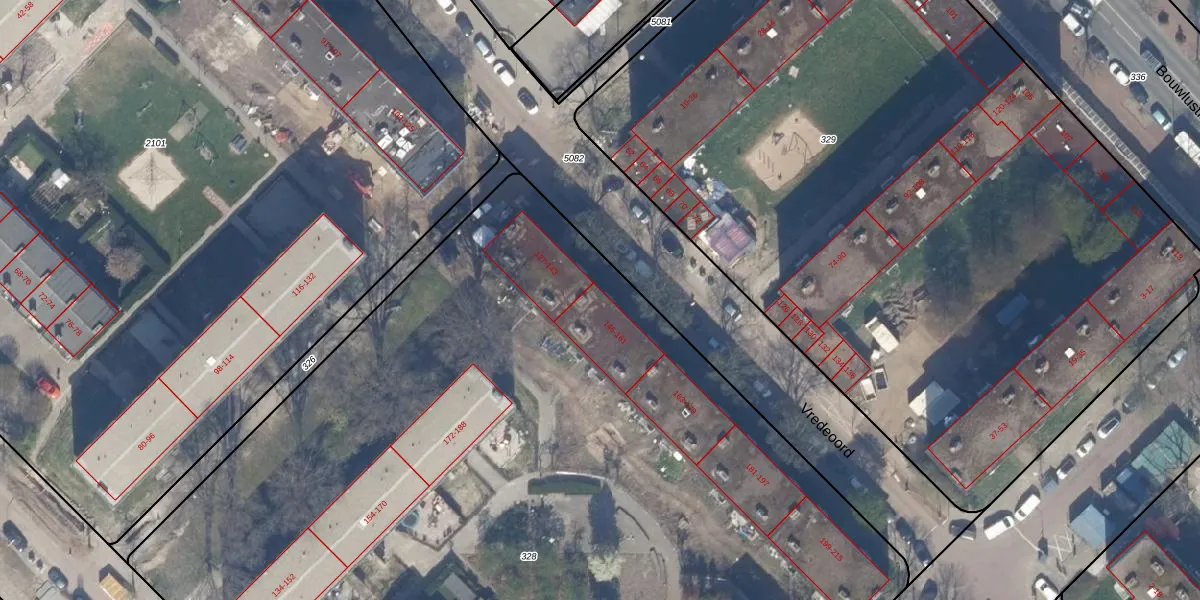 Het perceel waarop Vredeoord 147 staat heeft een oppervlakte van 8756 m². Dit is een zeer groot perceel. De perceeloppervlakte wordt geregistreerd door het Kadaster. Gedetailleerde informatie over de maten van dit perceel kunt u vinden in het rapport Kadastrale kaart met maatvoering van Vredeoord 147.