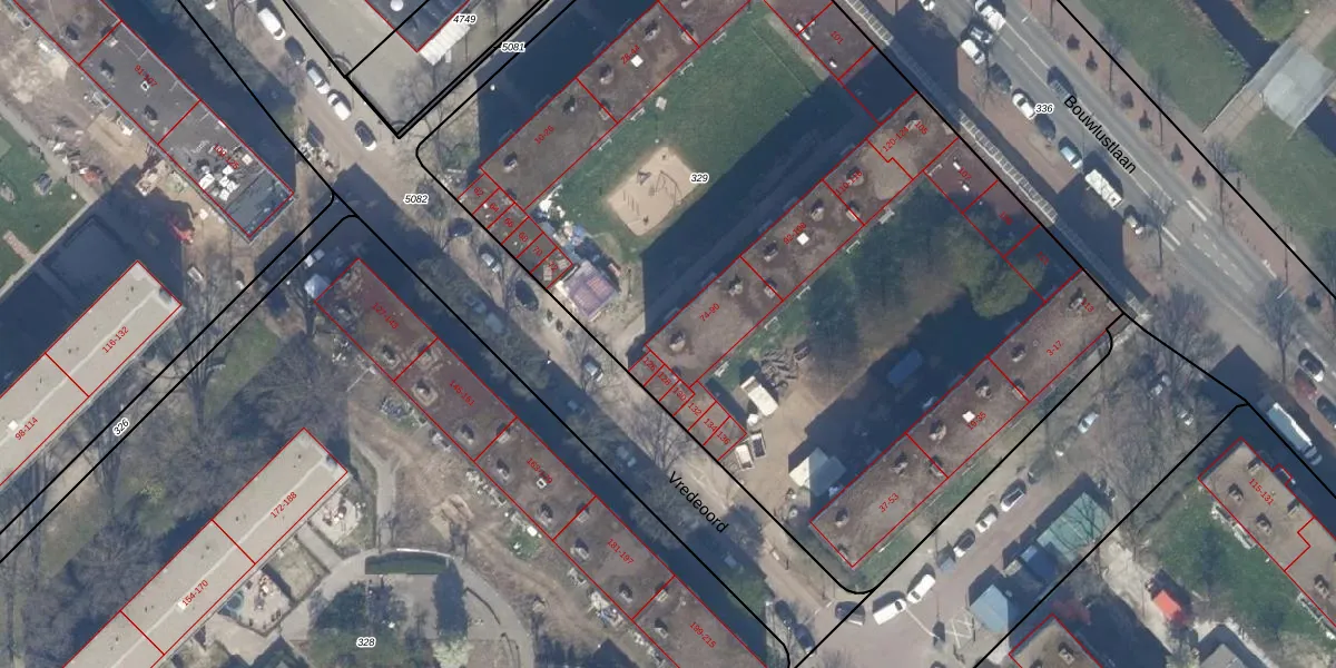 Vredeoord 76 is gelegen op kadastraal perceel GVH37AW329. Deze kadastrale aanduiding is uniek en wordt gebruikt door het Kadaster om eigendomsrechten en andere zakelijke rechten vast te leggen. Het perceel maakt onderdeel uit van de kadastrale gemeente 's-Gravenhage.