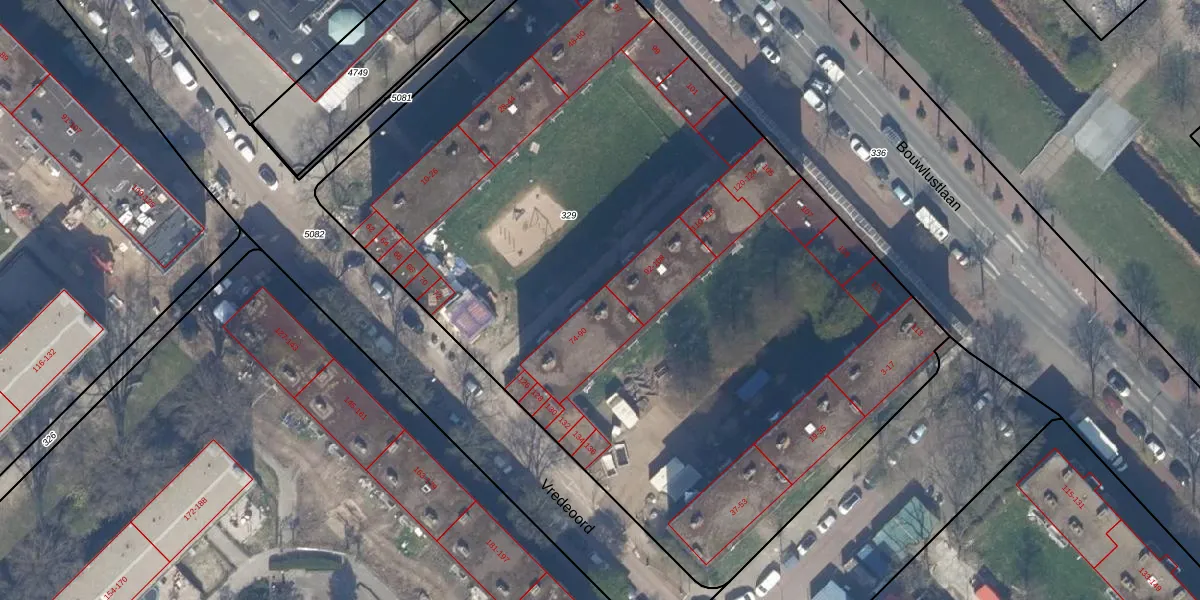 Het perceel waarop Vredeoord 90 staat heeft een oppervlakte van 5648 m². Dit is een zeer groot perceel. De perceeloppervlakte wordt geregistreerd door het Kadaster. Gedetailleerde informatie over de maten van dit perceel kunt u vinden in het rapport Kadastrale kaart met maatvoering van Vredeoord 90.