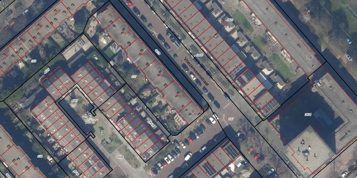 Vriezenveenstraat 57 is gelegen op kadastraal perceel GVH37AW117. Deze kadastrale aanduiding is uniek en wordt gebruikt door het Kadaster om eigendomsrechten en andere zakelijke rechten vast te leggen. Het perceel maakt onderdeel uit van de kadastrale gemeente 's-Gravenhage.