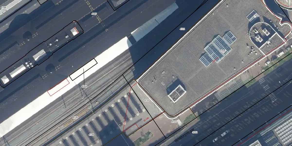 Het perceel waarop Waldorpstraat 17-F staat heeft een oppervlakte van 5637 m². Dit is een zeer groot perceel. De perceeloppervlakte wordt geregistreerd door het Kadaster. Gedetailleerde informatie over de maten van dit perceel kunt u vinden in het rapport Kadastrale kaart met maatvoering van Waldorpstraat 17-F.
