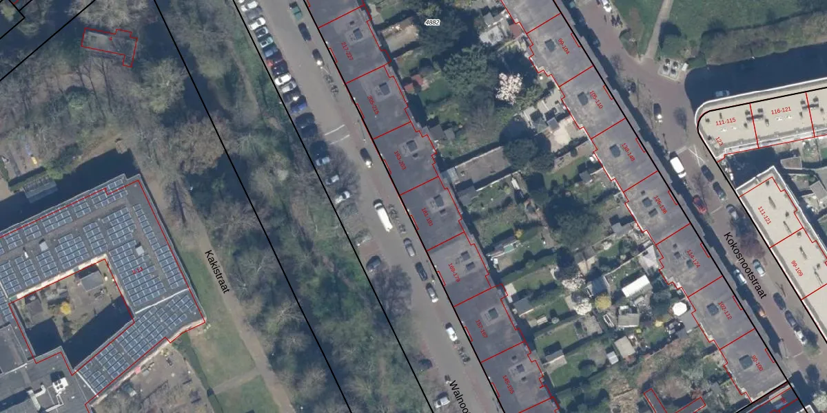 Walnootstraat 187 is gelegen op kadastraal perceel LDN03I4882. Deze kadastrale aanduiding is uniek en wordt gebruikt door het Kadaster om eigendomsrechten en andere zakelijke rechten vast te leggen. Het perceel maakt onderdeel uit van de kadastrale gemeente Loosduinen.