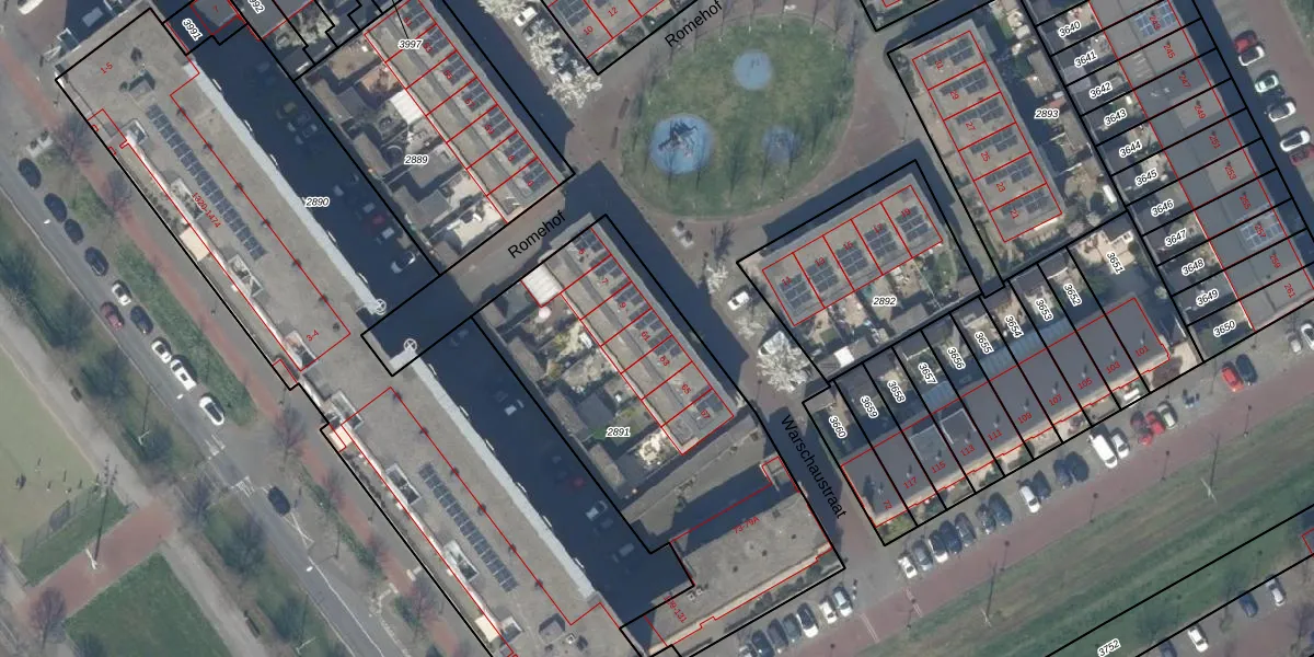 Het perceel waarop Warschaustraat 61 staat heeft een oppervlakte van 1653 m². Dit is een zeer groot perceel. De perceeloppervlakte wordt geregistreerd door het Kadaster. Gedetailleerde informatie over de maten van dit perceel kunt u vinden in het rapport Kadastrale kaart met maatvoering van Warschaustraat 61.