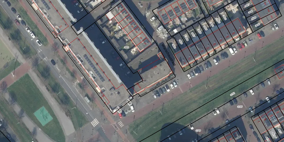 Het perceel waarop Warschaustraat 79 staat heeft een oppervlakte van 1653 m². Dit is een zeer groot perceel. De perceeloppervlakte wordt geregistreerd door het Kadaster. Gedetailleerde informatie over de maten van dit perceel kunt u vinden in het rapport Kadastrale kaart met maatvoering van Warschaustraat 79.