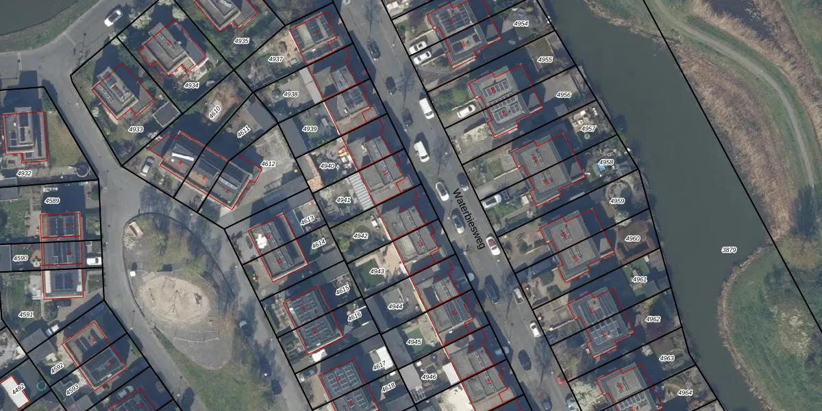 Waterbiesweg 13 is gelegen op kadastraal perceel GVH39AY4942. Deze kadastrale aanduiding is uniek en wordt gebruikt door het Kadaster om eigendomsrechten en andere zakelijke rechten vast te leggen. Het perceel maakt onderdeel uit van de kadastrale gemeente 's-Gravenhage.