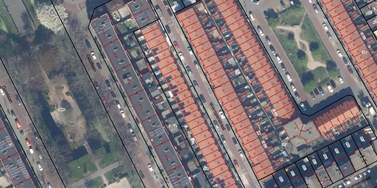 Weesperstraat 33 is gelegen op kadastraal perceel GVH28AL558. Deze kadastrale aanduiding is uniek en wordt gebruikt door het Kadaster om eigendomsrechten en andere zakelijke rechten vast te leggen. Het perceel maakt onderdeel uit van de kadastrale gemeente 's-Gravenhage.