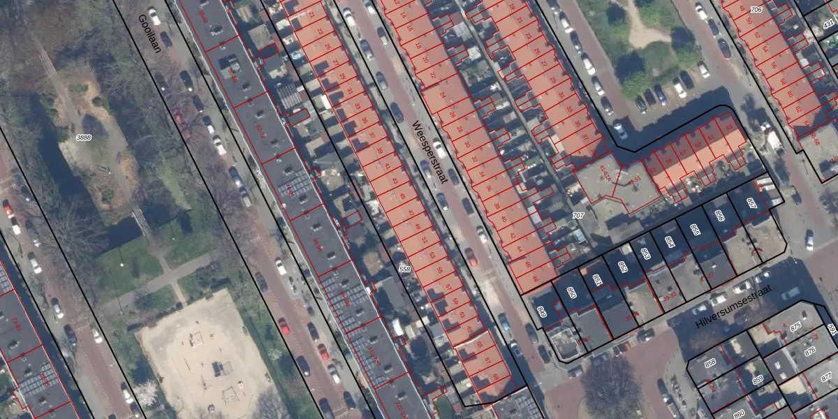 Het perceel waarop Weesperstraat 47 staat heeft een oppervlakte van 1887 m². Dit is een zeer groot perceel. De perceeloppervlakte wordt geregistreerd door het Kadaster. Gedetailleerde informatie over de maten van dit perceel kunt u vinden in het rapport Kadastrale kaart met maatvoering van Weesperstraat 47.