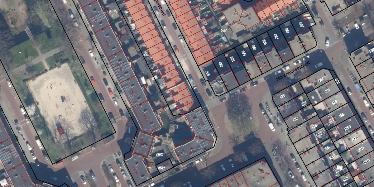 Het perceel waarop Weesperstraat 67 staat heeft een oppervlakte van 1887 m². Dit is een zeer groot perceel. De perceeloppervlakte wordt geregistreerd door het Kadaster. Gedetailleerde informatie over de maten van dit perceel kunt u vinden in het rapport Kadastrale kaart met maatvoering van Weesperstraat 67.