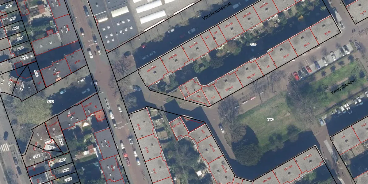 Weigeliaplein 118 is gelegen op kadastraal perceel GVH29AM5187. Deze kadastrale aanduiding is uniek en wordt gebruikt door het Kadaster om eigendomsrechten en andere zakelijke rechten vast te leggen. Het perceel maakt onderdeel uit van de kadastrale gemeente 's-Gravenhage.