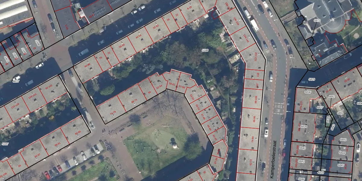 Het perceel waarop het adres ligt is GVH29-AM-5188. De afkorting 'GVH29' staat voor kadastrale gemeente 's-Gravenhage. Het perceel is met 9055 m² relatief groot. Het gemiddelde ligt in de kadastrale gemeente 's-Gravenhage op 303,34 m². De grootste perceeloppervlakte in de kadastrale gemeente is 3,0 ha. De kleinste oppervlakte bedraagt 0 m². Op het perceel liggen in totaal 205 adressen. De huidige grenzen van het perceel zijn digitaal in de Basisregistratie Kadaster (BRK) geregistreerd op 16-04-2009.