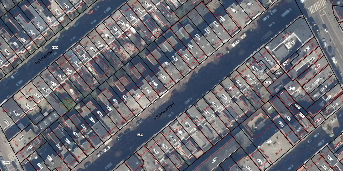Weimarstraat 203 is gelegen op kadastraal perceel GVH29AM2989. Deze kadastrale aanduiding is uniek en wordt gebruikt door het Kadaster om eigendomsrechten en andere zakelijke rechten vast te leggen. Het perceel maakt onderdeel uit van de kadastrale gemeente 's-Gravenhage.